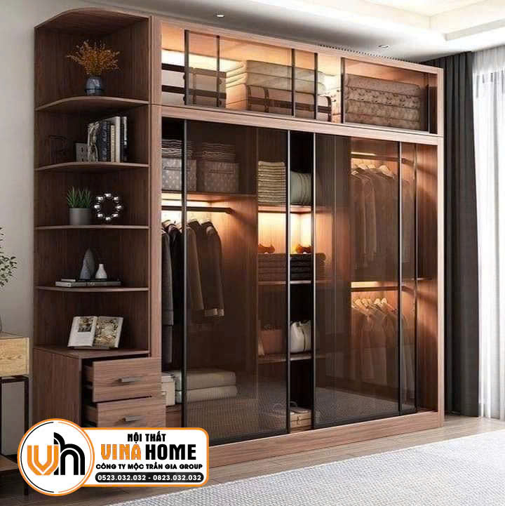 Tủ Quần Áo Gỗ Cửa Kính Mờ